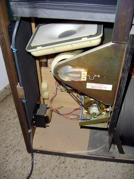 Angefangen hat alles mit dem Suchen einer geeigneten Ausschlachtorgel für die Tastatur meines Modularsynthesizers. Dabei bin ich auf eine BK-20B von Yamaha gestossen, die auch über einen eingebauten Leslie verfügt. Ungewöhnlicherweise fand sich nicht die übliche Holz- oder Styroportrommel vor einem Lautsprecher, sondern ein kleiner Lautsprecher, der auf einer Achse mit Gegengewicht rotiert. Ungewöhnlich, aber sicher eine gute Lösung. Yamaha hat auch Selbständige Lautsprecher gebaut, die ein solches Ding enthalten. Nur die Mittel- und Hochtöne gelangen durch diesen Rotationslautsprecher, die Bässe der Orgel kommen über einen separaten Lautsprecher. Dazu ist eine Frequenzweiche vorhanden, die aber überbrückt werden kann, um nur statischen Klang zu erhalten. Das Design des Kabinets, in dem die Leslieeinheit fortan ihren Dienst antreten soll, ist insofern ungewöhnlich, da der Lautsprecher um eine waagrechte Achse rotiert und der Klang das Gehäuse auf der Oberseite und den Seiten verlässt. Beim richtigen Lesliespeaker rotiert das Horn um eine senkrechte Achse. Als ich das erste mal als Hammond-Grünschnabel ein Leslie gesehen habe, dachte ich erst, dass das Horn tatsächlich um eine waagrechte Achse rotiert, und hatte das Design in etwa so in Erinnerung, wie mein Gehäuse nun aussieht. Tatsächlich war es ein Leslie 760, bei dem die 'Vorhänge' herausgeschnitten wurden... Was sollte nun mit dem Bass geschehen? Entweder ein elektronisch verzögertes Tremolo oder eine mechanische Trommel stand zur Debatte. Die Wahl it auf eine Trommel gefallen, weils technisch interessanter und einfacher erschien. Die Kiste erhielt Rollen, was beim Transport den Rücken und den Boden gleichermassen schont. Nun wurde die arme Electone ausgeschlachtet. Ohne Schaltpläne wurden mit Multimeter die noch benötigten Komponenten von der Klangerzeugung getrennt. Die massiven Kabelbäume und kilometerlanges Gedrähte machten die Sache nicht einfach, aber besser ein solides, aufgeräumtes und durchschaubares Orgelinnenleben als irgend ein billiges Gebastel. Nachdem die Orgel komplett zerlegt war, blieb für den Leslie noch das Netzteil, der Verstärker, die Rotationseinheit und der Basslautsprechen inklusive Weiche und aller Schalter übrig. Nachdem die Gehäuseteile ausgeschnitten und teilweise montiert waren, konnten die Komponenten an den neuen Platz geschraubt werden. Die Schalter wurden durch Relais ersetzt, hier und dort Kabel gekürzt und angepasst, Eingangsbuchse und Netzschalter eingebaut, und siehe da: alles funktionierte noch wie gewohnt! Nach diesem Erfolg kam die Basstrommel an die Reihe. Als Motor war ein alter Lüftermotor sammt Steuerung aus einem Laborofen vorgesehen. Die Trommel selbst wurde aus Styropor geschnitten. Damit die Deckel schön rund wurden, ging ich dabei nach auf dem Bild gezeigten Verfahren vor, bei dem ein heisser Draht den Schnitt erledigte. Als Modellflieger habe ich so schon ganze Flugzeuge aus dem Vollen geschnitten. Die Achse wird mit 2 Kugellagern und Stellringen in Position gehalten, die auch die Trommel fixieren. Auf dem Trommeldeckel befindet sich eine dünne Holzverstärkung, auf den auch der Ring für den Antieb geklebt ist. Um den Rundlauf zu garantieren, habe ich dazu eine Lehre angefertigt. Als Antriebsriemen dient eine Gummikordel. Die Trommel selbst sollte sehr leicht sein, um den Motor nicht unnötig zu belasten und nicht ewig zu beschleunigen. Ausgewuchtet sollte das Ding auch sein. Momentan habe ich noch Probleme, dass die Steuerung des zweiten Motors den Verstärker zum Brummen bringt, und die Relais beim Schalten ein Knacken generieren. Aber sonst klingt es nicht übel. Beim Basteln geht auch nie alles glatt, so habe ich z.B. den Lautsprecherausschnitt zu gross gemacht, was einen Adapter erforderte, der über den Ausschnitt geklebt wurde. Weitere Arbeiten dürften die Entknackung des Schaltvorganges sein, die Lackierung des Gehäuses mit Struckturlack und ein Stoffbezug der Schallöffnungen.